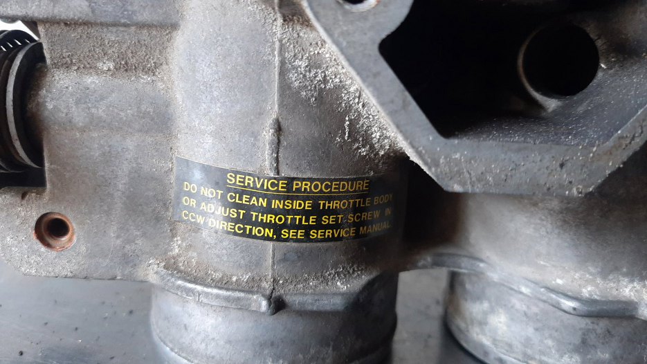 I ostrzeżenie na obudowie przepustnicy. w tym momencie chciałem już zrezygnować, no bo skoro "do not", to "do not" i już. Potem obudził się we mnie wewnętrzny buntownik i jednak postanowiłem i wyczyścić w środku przepustnicę i wykręcić śrubkę. Skoro to czytasz, to nie wywołałem tym żdanego kataklizmu, ufff...