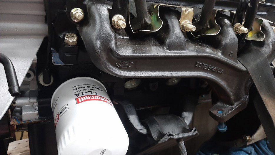 Wkręciłem je na miejsce (widać je ledwo). Po lewej nad filtrem jest nowy czujnik ciśnienia oleju.