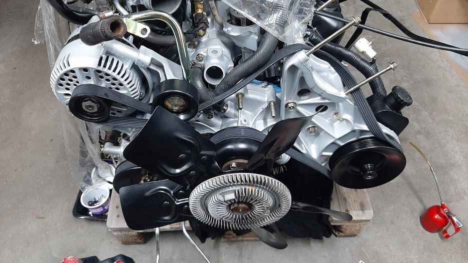 Założyłem pasek wielorowkowy. Dla zabawy kombinowaliśmy z synem jak go założyć bez użycia serwisówki. Po szóstym podejściu zorientowałem się, że jeszcze nie ma kompresora klimy i dlatego jest za długi pasek :).