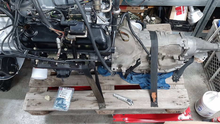 Potem przygotowałem silnik do transportu - przykręciłem go w kilku miejscach do palety pasami.