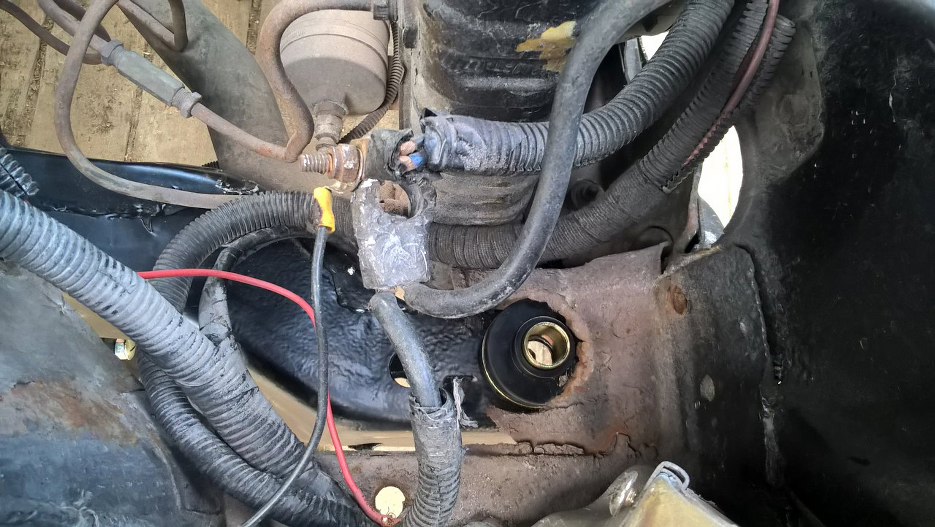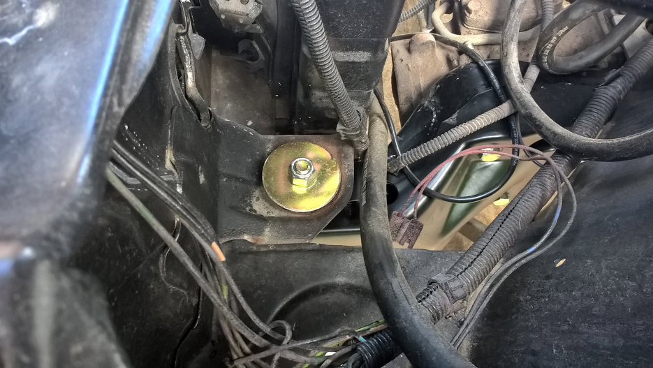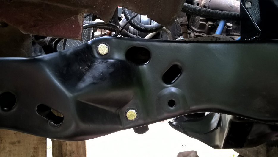 Przykręciłem przekładnię kierowniczą. Tylko na dwie śruby, bo tylko tyle jeszcze do czegoś się nadawało. Zresztą to i tak tylko na chwilę, bo nowe śruby już są zamówione.