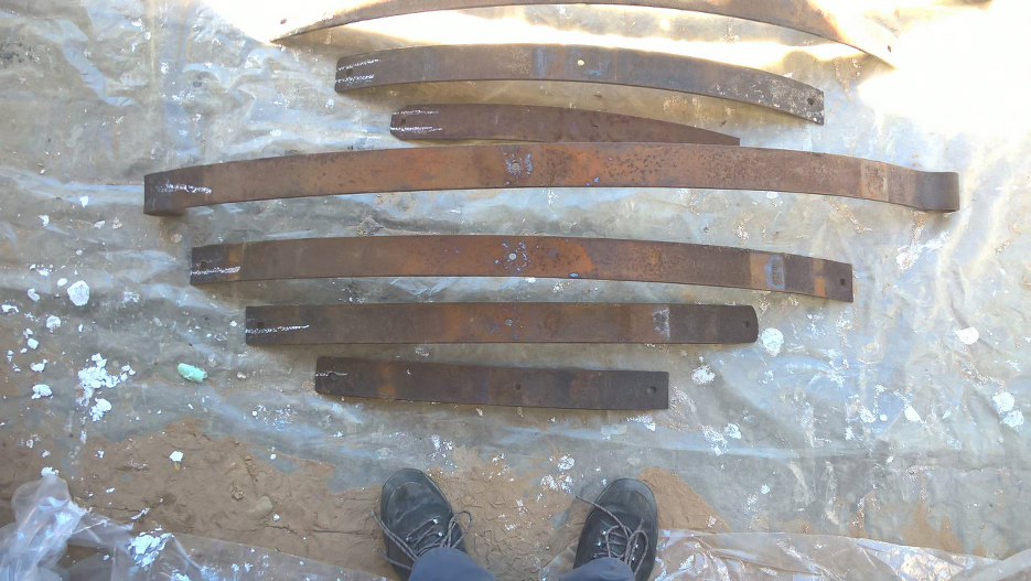 Pióra resorów oddałem też do piaskowania. Znaczniki kredą nie przetrwały :) ale i tak będę wiedział jak to zmontować.