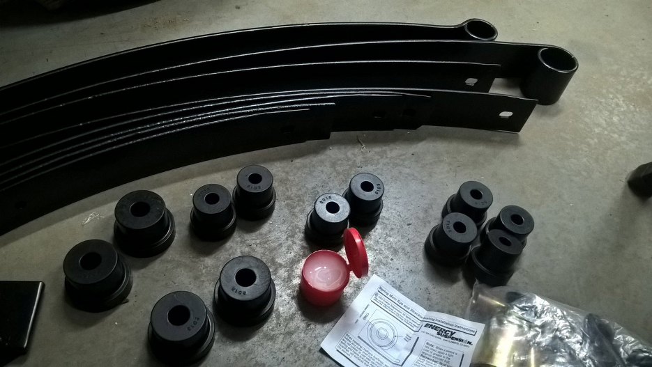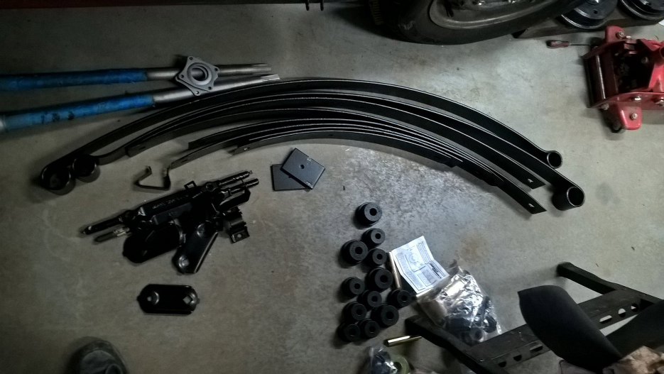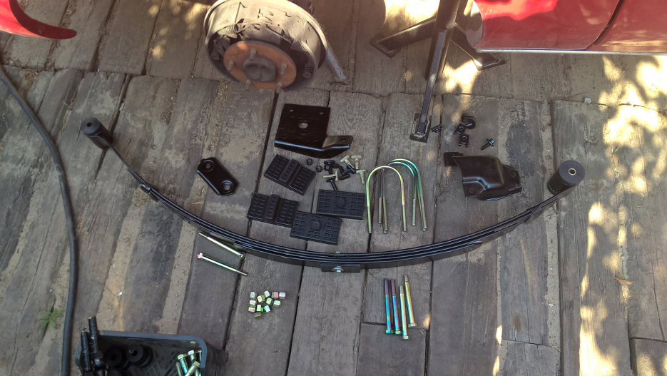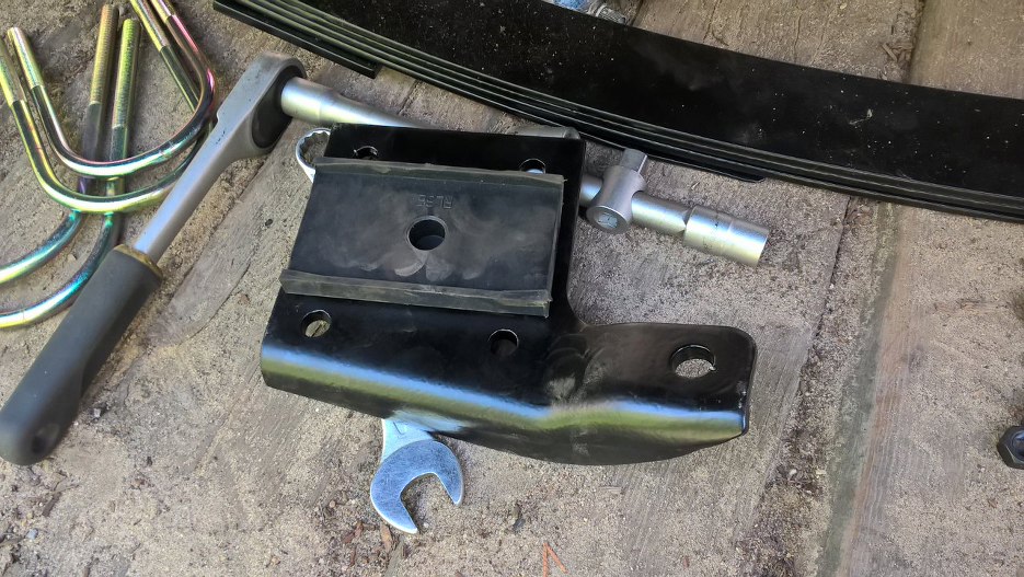 Przygotowałem blachę do mocowania resoru do mostu. Tu też są nowe gumy w zestawie.