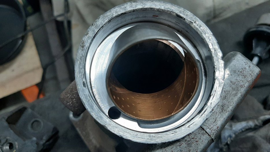 W ogonku okazało się, że jest wyrobiona panewka wału napędowego. To jest górna strona, nie wyrobiona.