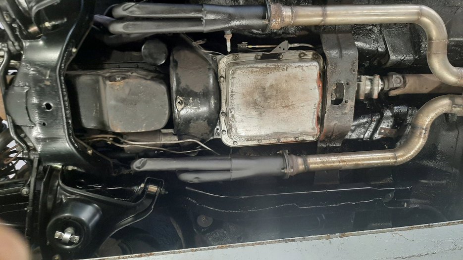 Wpadłem potem w wir pracy i nieopatrznie, nie robiąc zdjęć, zaspawałem tą dziurkę, pomalowałem kolektory i założyłem skrzynię biegów. Oby teraz nic nie ciekło...