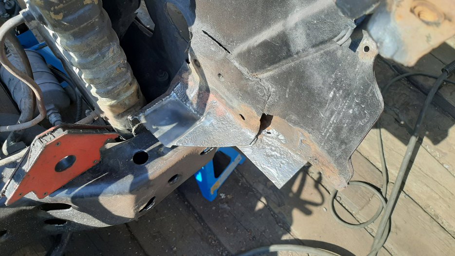 Tu widać ile blachy brakuje. Trefl wyciął nowy kawałek blachy do wspawania.