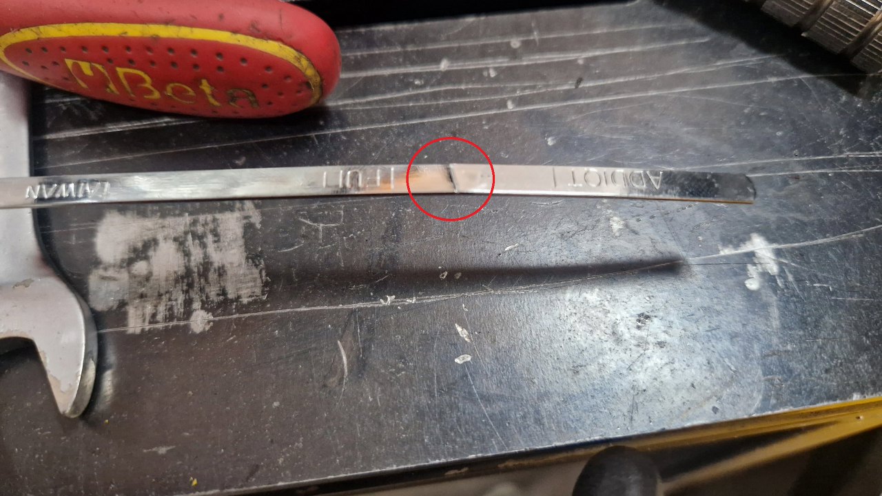 Sam bagnet jest sporo za długi. Przymierzyłem go przy pompie oleju i zaznaczę, gdzie trzeba go obciąć.