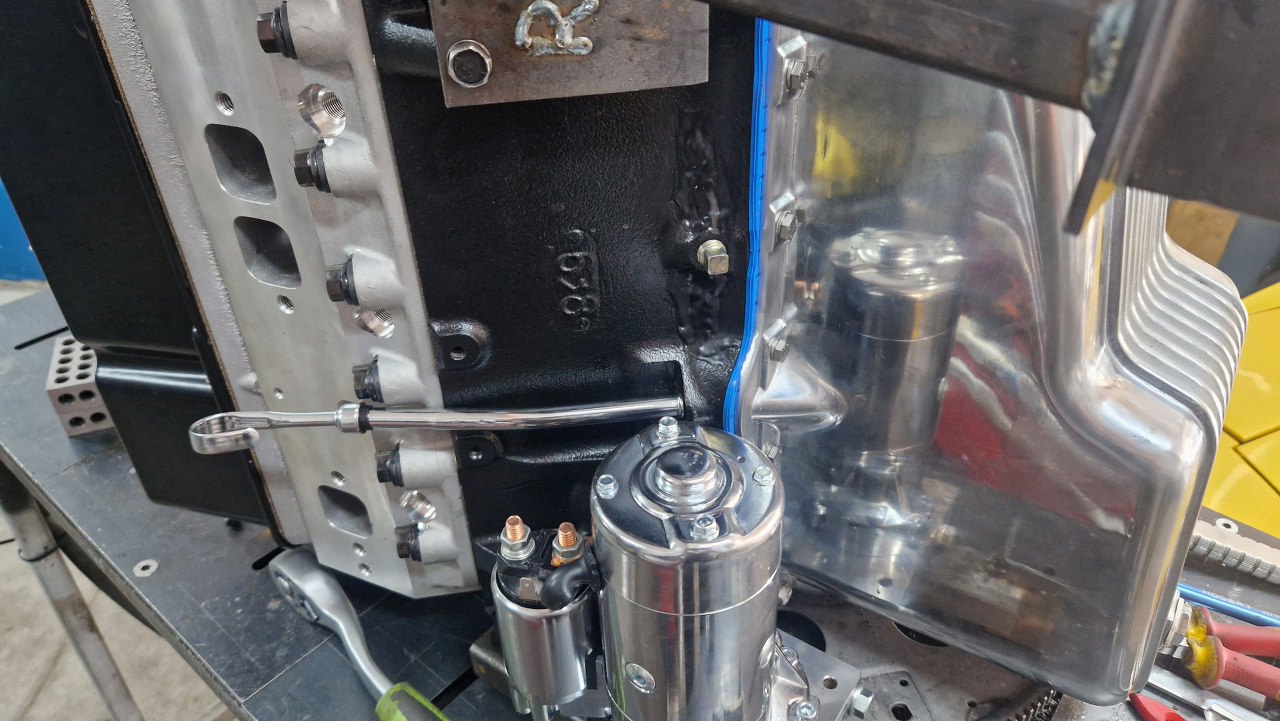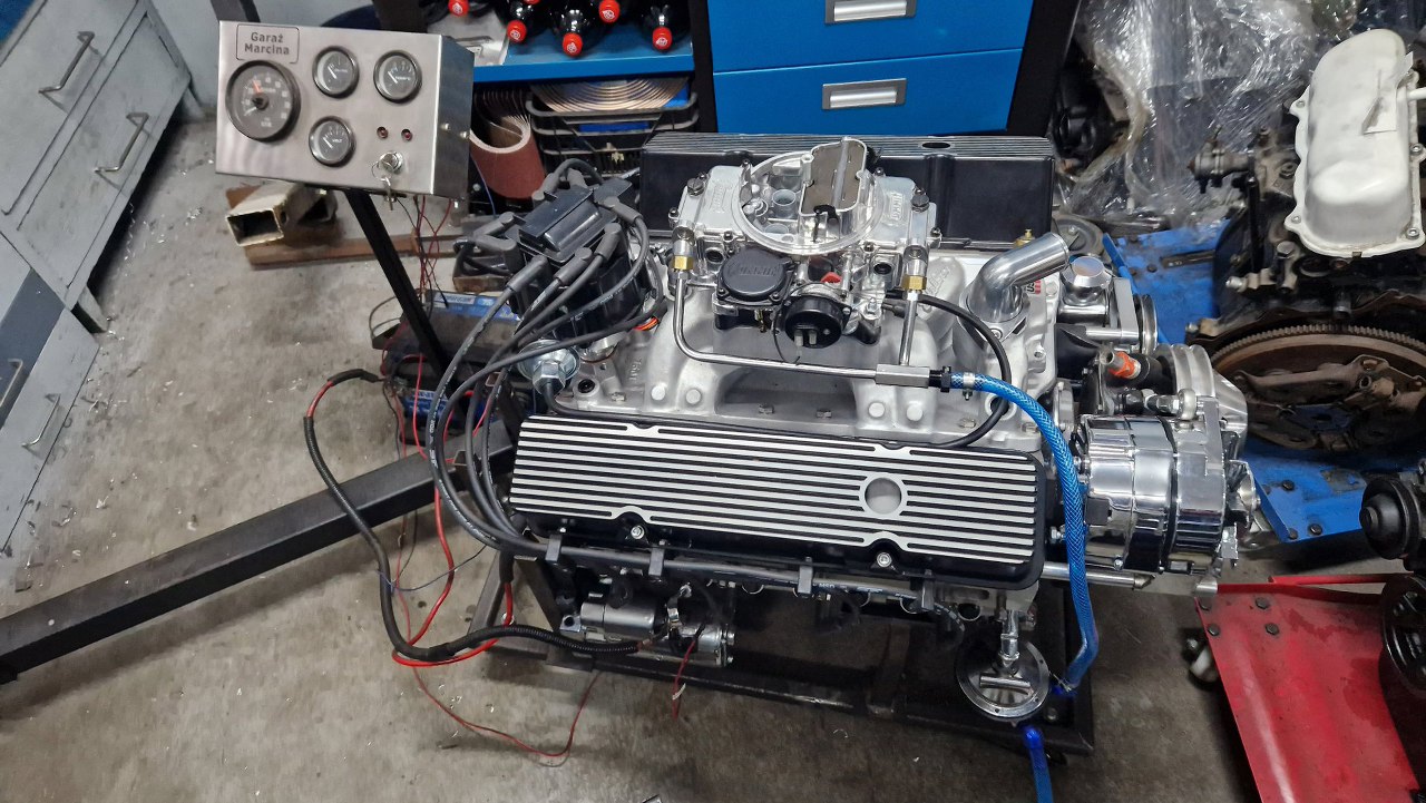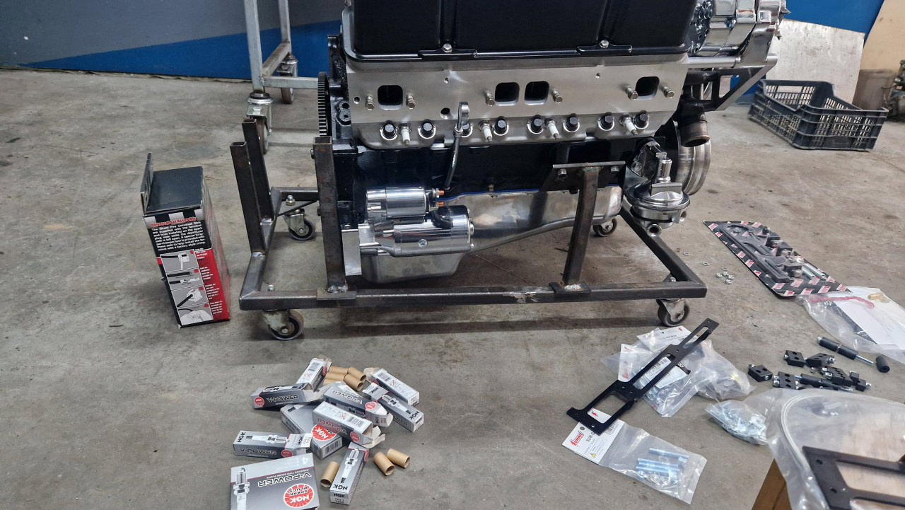 Potem wlałem olej do silnika, podłączyłem zegary i zacząłem kręcić rozrusznikiem. Wkrótce miałem już ciśnienie oleju, więc jset dobrze. Nie mogliśmy się też oprzeć, i z właścicielem odpaliliśmy silnik tu, na stojaku. Ależ to głośne :).