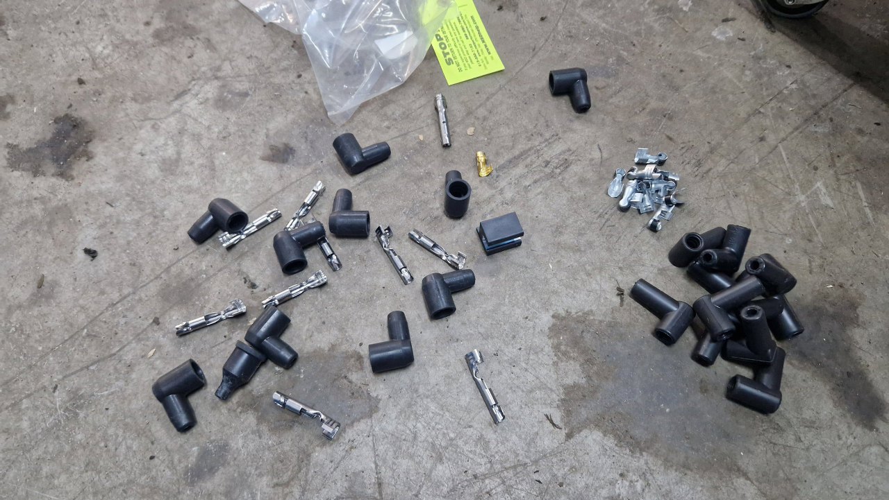 Po ich docięciu, do zaciśnięcia są końcówki. Najtrudniejsze z tego wszystkiego jest naciągnięcie tych gumowych osłonek na przewody.