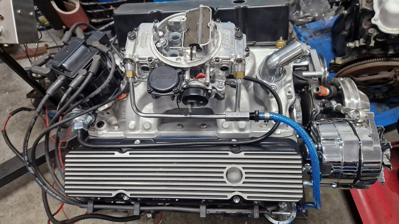 Dobrałem też króćce do pompy paliwa i podłączyłem ją do gaźnika. Widać też przykręconą obudowę termostatu.