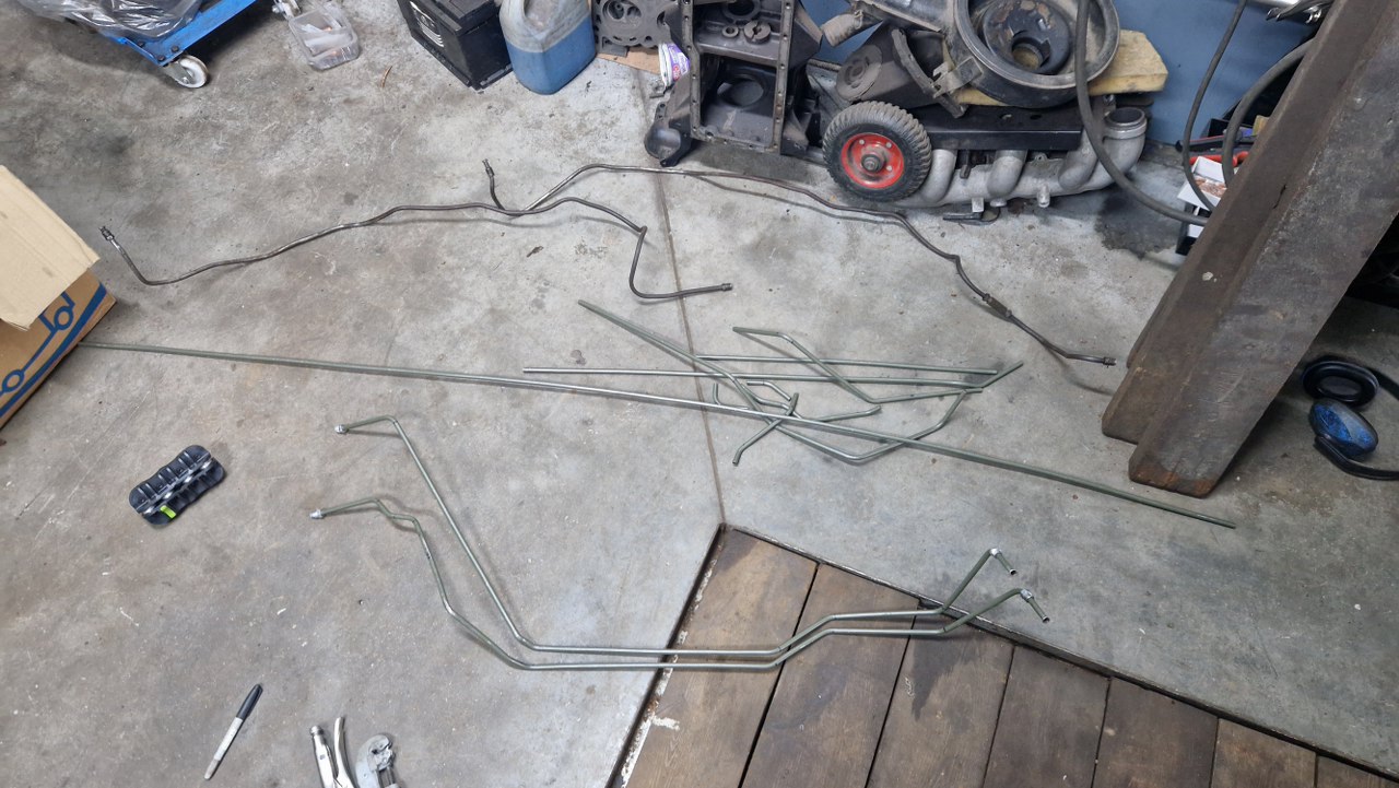Nie mogłem patrzeć na niemiłosiernie pogięte rurki chłodzenia skrzyni. To te na górze. Po wycięciu i wygięciu kilku szablonów dorobiłem nowe - to te na dole.
