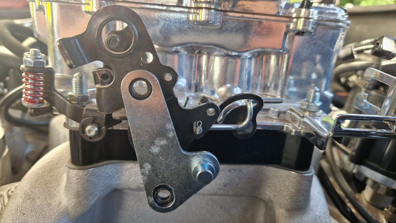 Pora na podłączenie gaźnika - tu było masę kombinowania. Potrzebny był ten element, adapter do linki kick-down.