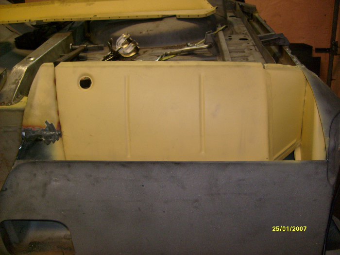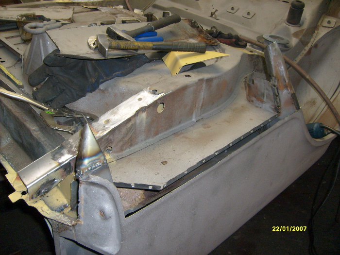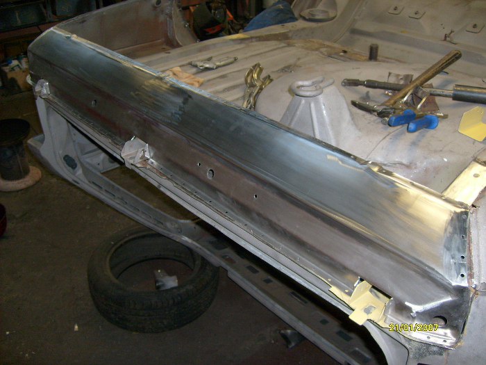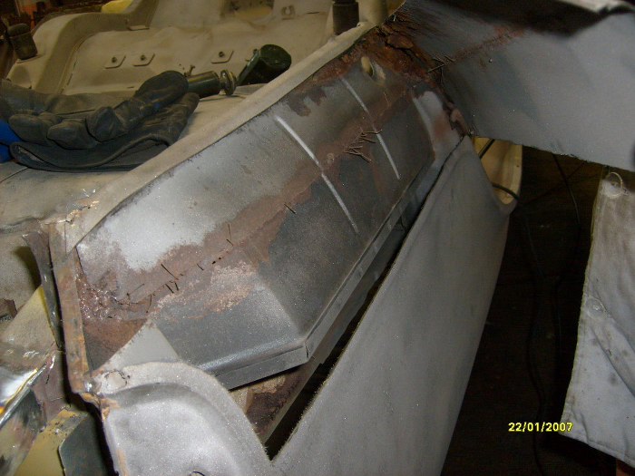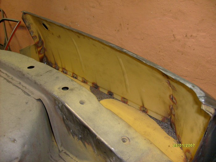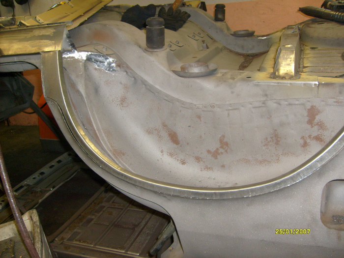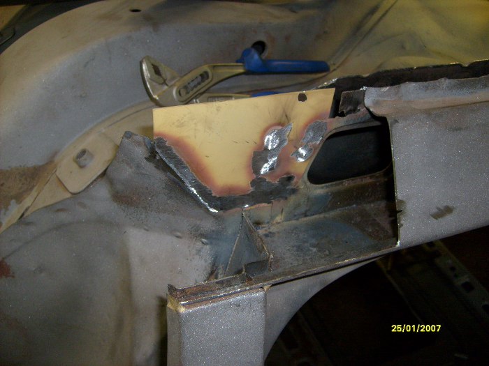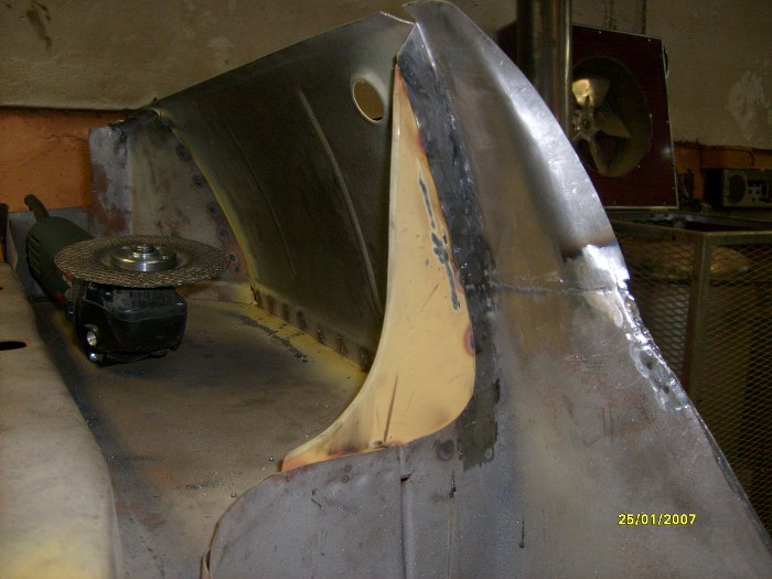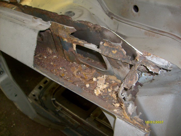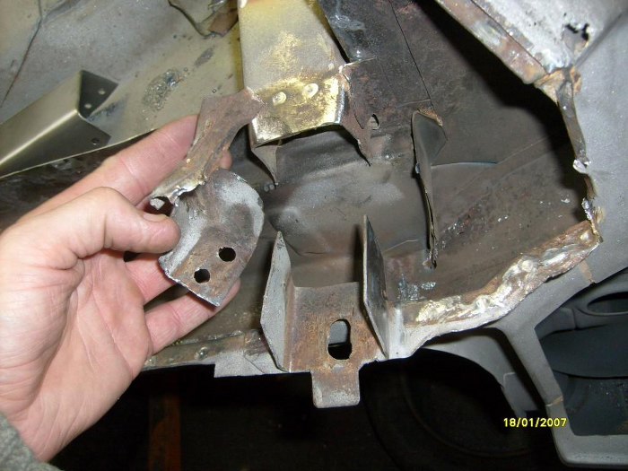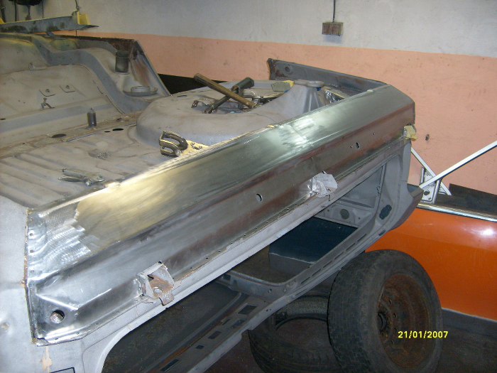 No i właśnie - oprócz wyciętych pasów tylnych, wewnątrznego i zewnętrznego, wycięte zostały i boki. Trochę mi ręce opadają ile to jest roboty z w miarę zdrowym autem... Zwróć uwagę na nowy rożek po lewej stronie, jest to element, do którego będą łączone i kawałki boczne i pas tylny.