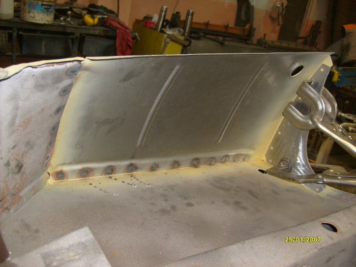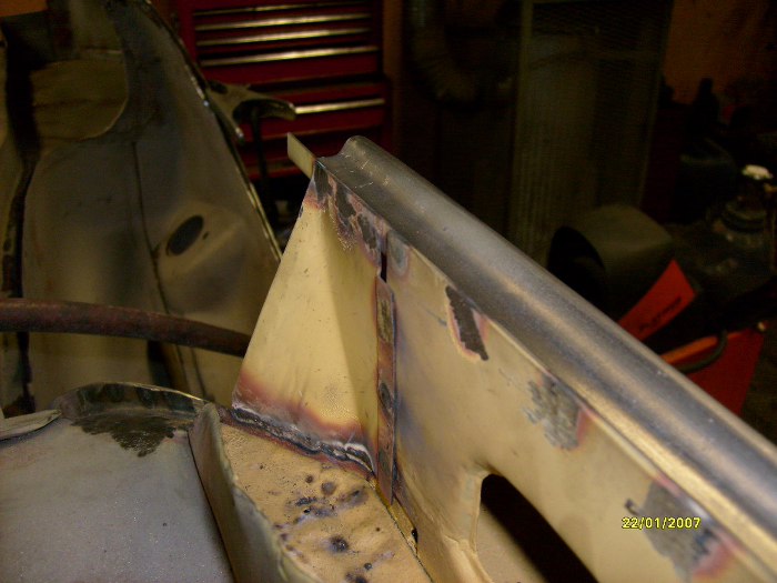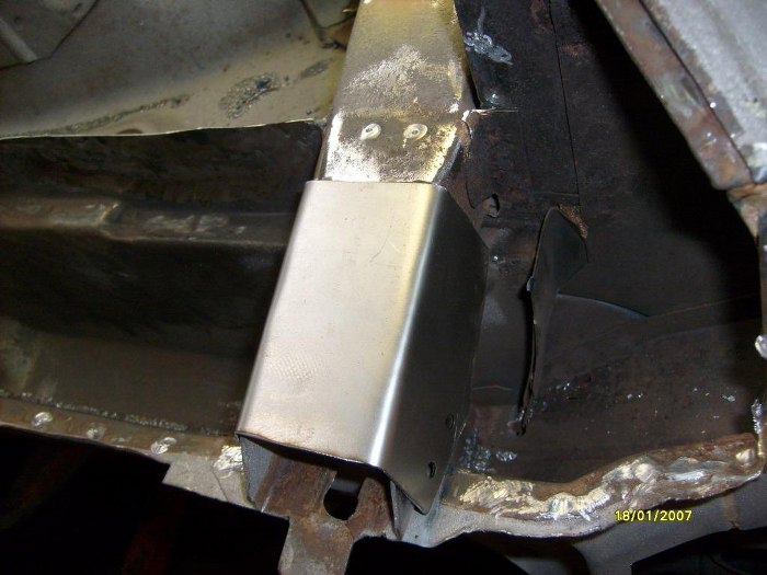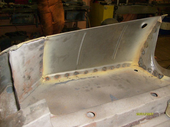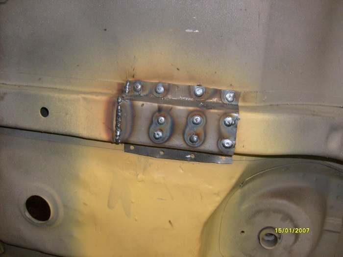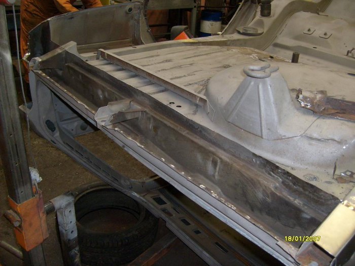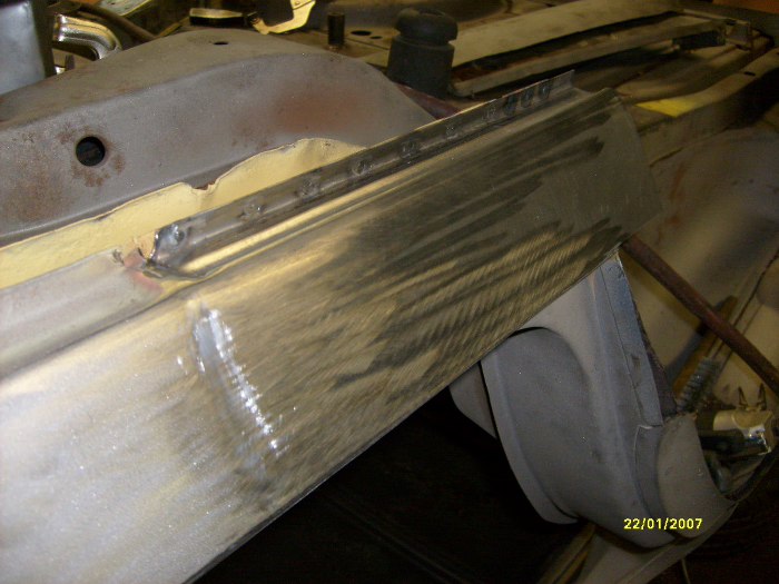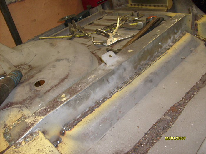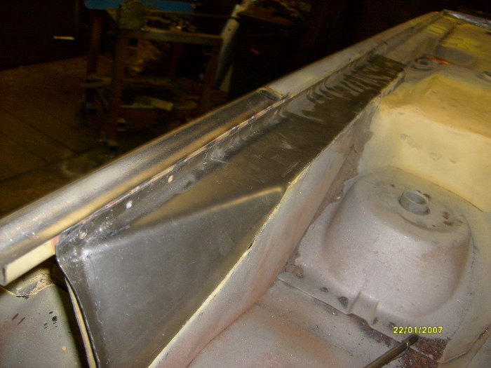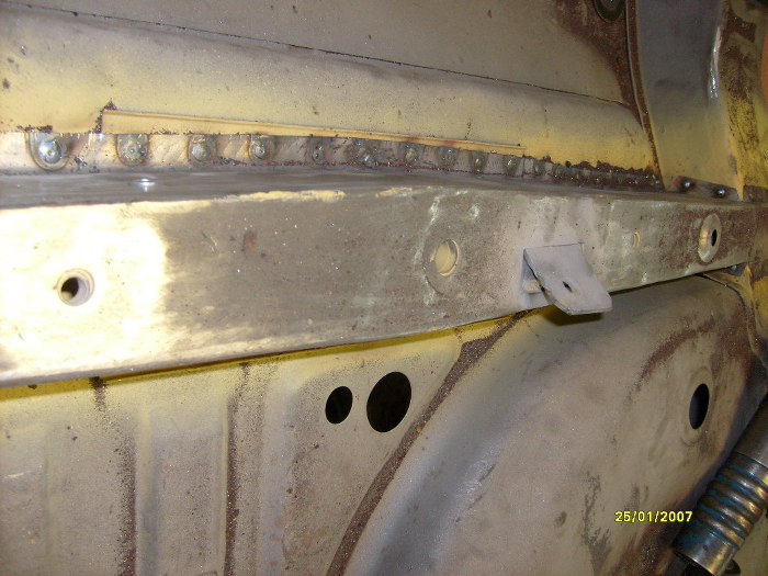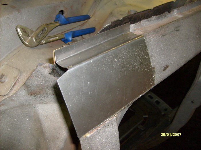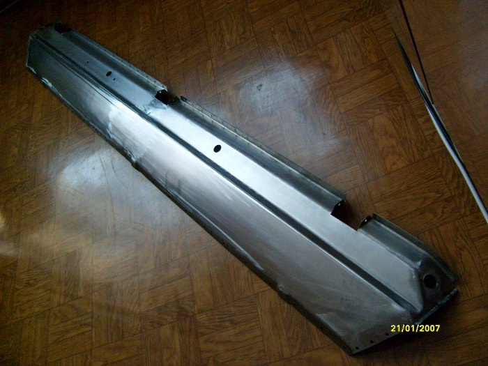 Już po wstawieniu kawałka progu zewnętrznego (ponownie - dorobionego na miejscu, nie z reperaturki) i elementu kończącego próg wewnętrzny.