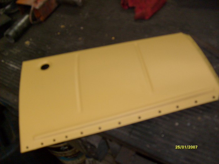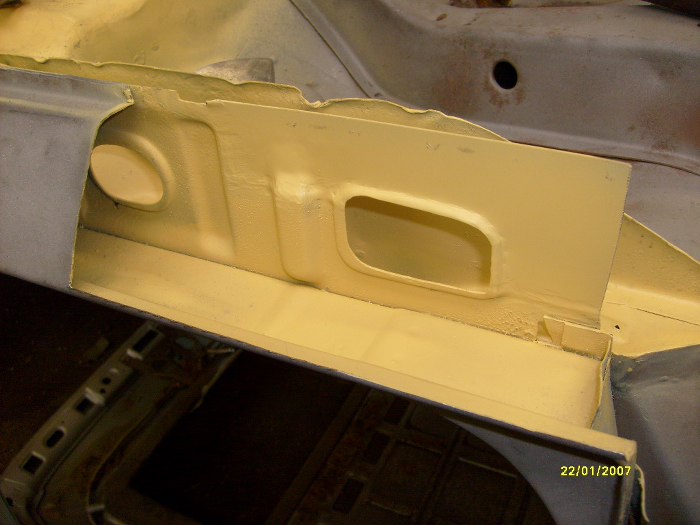 Na szczęście niedługo. Wstawiony brakujący element progu wewnętrznego, wyczyszczone i pomalowane.