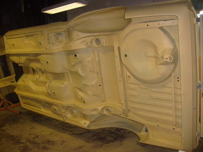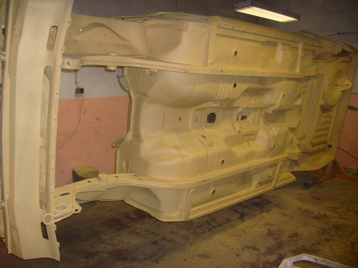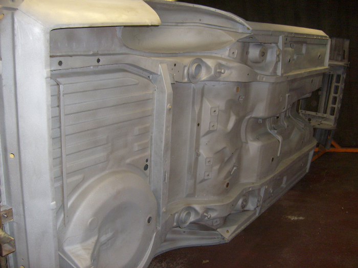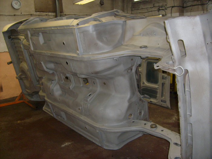 Granada pojechała na piaskowanie po raz drugi - po blacharce. Chodziło o to, żeby oczyścić to, co zaszło rdzą przez czas blacharki, doczyścić resztę miejsc i przygotować powierzchnie blach pod podkład reaktywny.