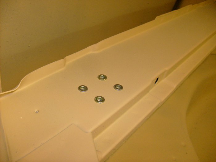 No i detale - założone sa nitonakrętki. Dzięki temu będzie można wszystko przykręcić bez niszczenia warstwy farby wkrętami. Tu rant błotnika, tu będą przykręcane nadkola plastikowe.