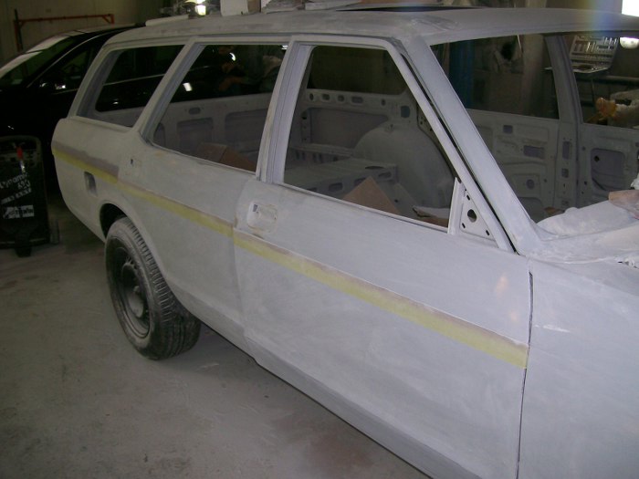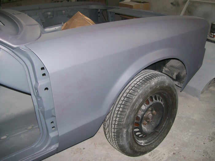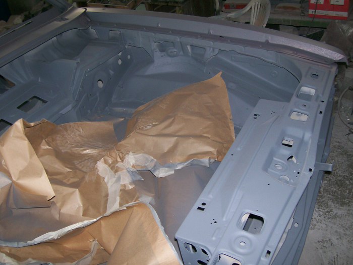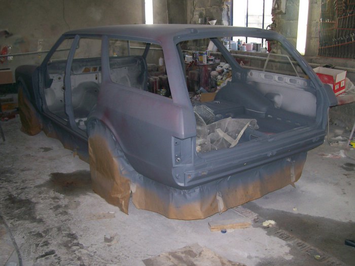A w międzyczasie po dłuższych poszukiwaniach (pół roku!) porządnego i mieszczącego się w budżecie lakiernika (którym w końcu okazał się jeden z większych, jeśli nie największy autoryzowany serwis BMW w rejonie Katowic) granada została poszpachlowana i wyprowadzona pod lakier.