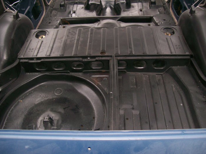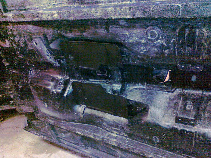 Tu widać przykręcane blachy osłaniające tłumiki. Dzięki temu zawsze można je zdemontować i sprawdzić, czy pod spodem nie ma rdzy. Również dzięki temu pomiędzy nimi a resztą karoserii wszystko jest dokładnie pomalowane.