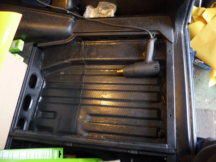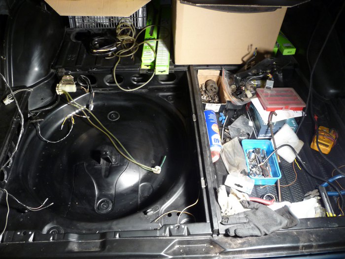 W środku bagażnik prawie gotowy - wygłuszenie z prawej strony...