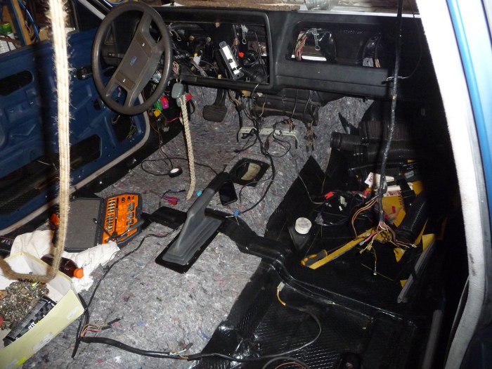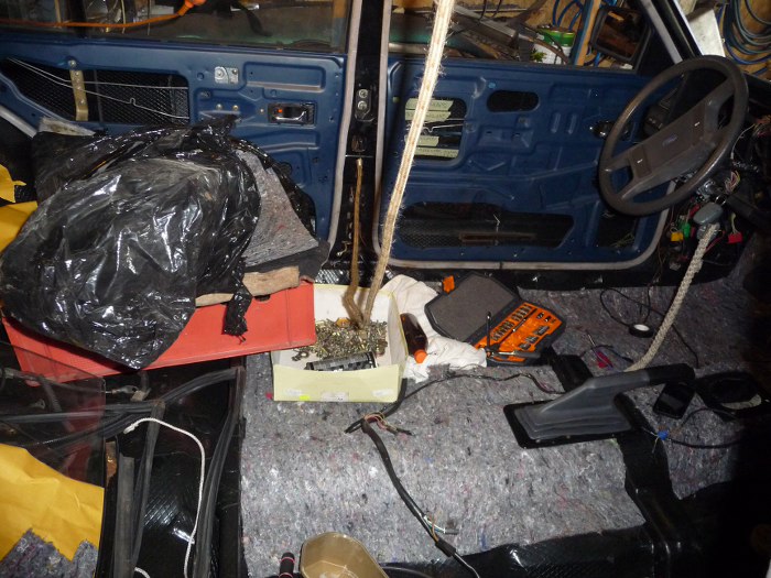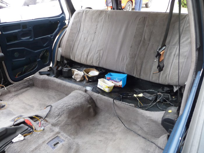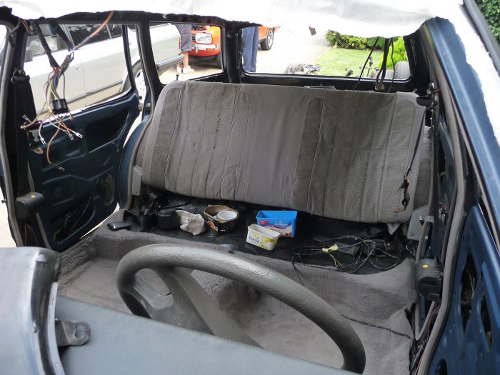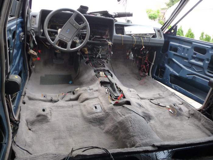 Potem dokończyłem kładzenie wiązek elektrycznych i mogłem włożyć wykładzinę. Zacząłem również montować tylną kanapę.