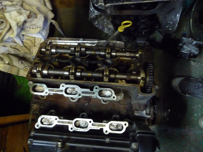 Miałem tego nie robić, ale tylko po zdjęciu z silnika wszystkiego, udało się dostać do hydraulicznych napinaczy łańcucha rozrządu. Chciałem się do tego dostać, bo często to się psuje i nie napina łańcucha, a wtedy silnik robi z siebie mielonkę. Przerobiłem to potem na mechaniczny napinacz.