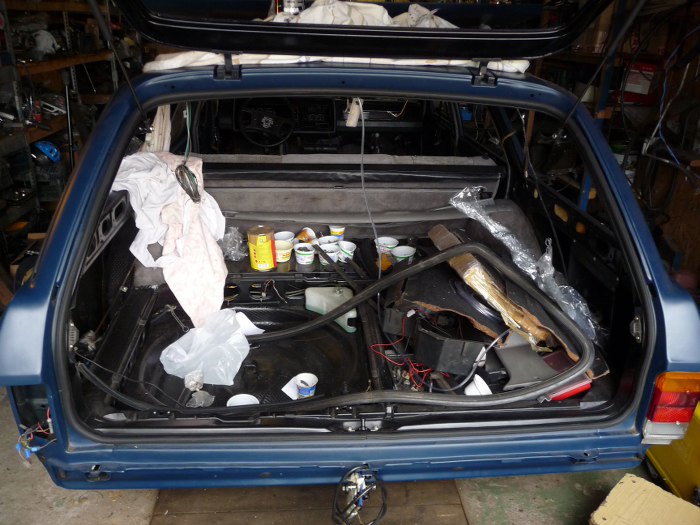Potem poświęciłem długie godziny na wplatanie w tylny lewy słupek wszystkich potrzebnych kabli. Przerąbana robota, ale w końcu się udało. Wplecenie ich w resztę nadwozia i w klapę nie było już takie trudne.