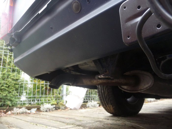 A tak to wygląda zamontowane na samochodzie. Resztę wydechu dorobię z nierdzewki jak mi ten oryginalny zardzewieje, na razie mnie nie stać :)