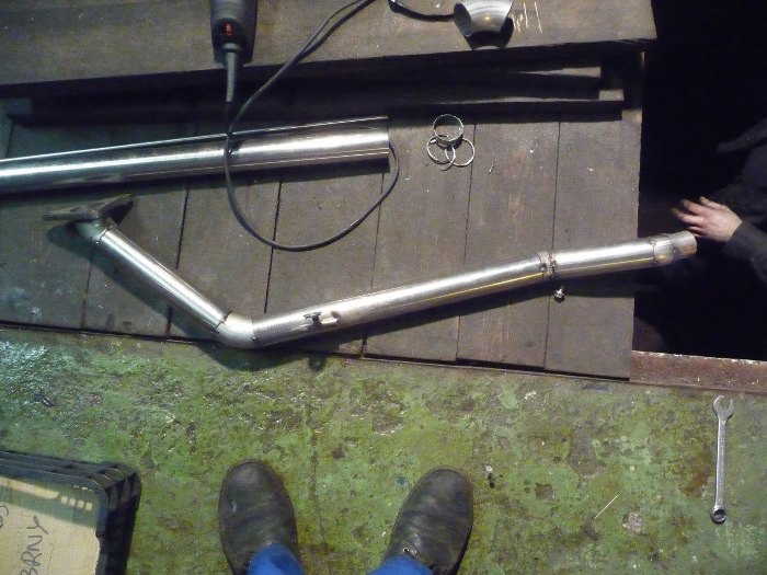 Następnie inny kolega przyjechał z rurkami z nierdzewki i dorobił brakujące fragmenty między kolektorem wydechowym a środkowymi tłumikami. Tu strona lewa.
