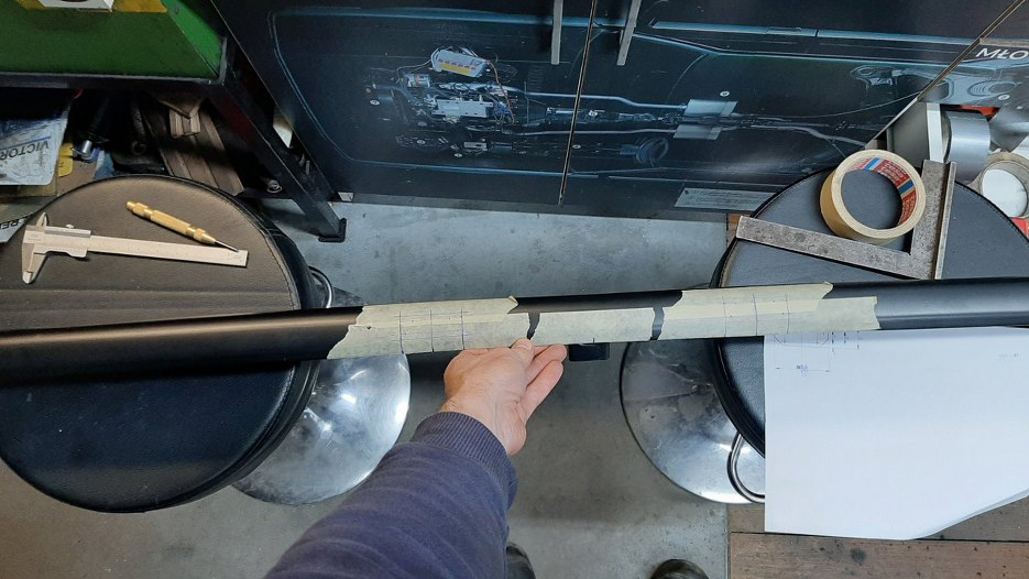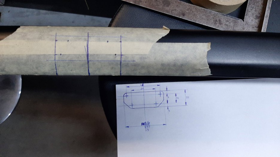 Z innego, zachomikowanego zderzaka odrysowałem otwór na lampkę i zwymiarowałem. Wymiary przeniosłem na nowy zderzak.