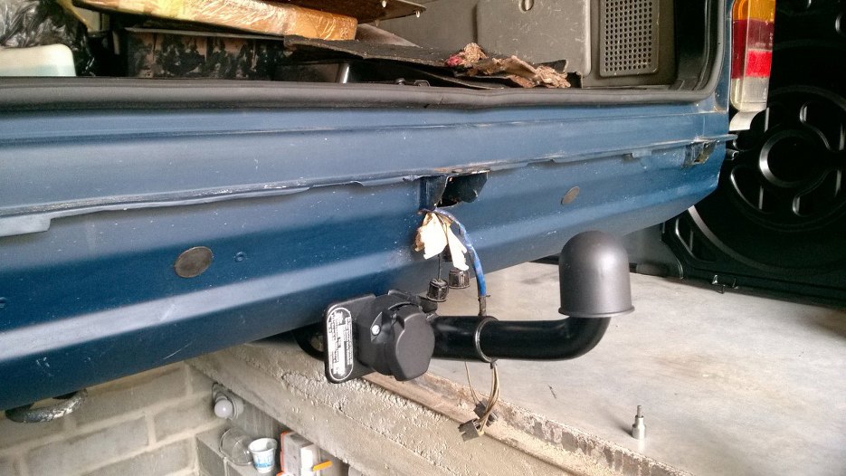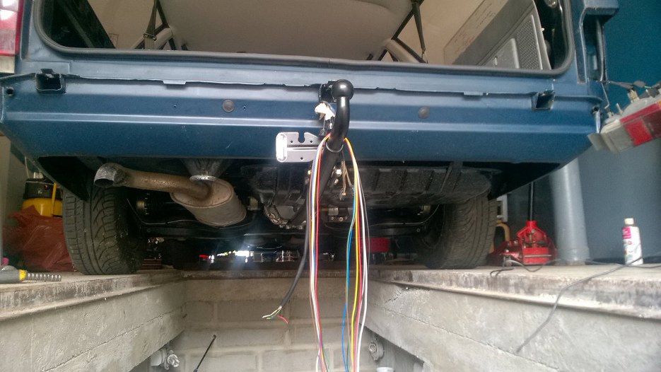Wcześniej jeszcze przygotowałem wszystko pod zderzakiem - wypuściłem czujniki parkowania, których w końcu nie uda mi się umieścić w zderzaku. Zastanawiam się, czy je wyjąć, czy kombinować nad dorobieniem jakiś mocowań pod zderzakiem. Założyłem też instalację do haka holowniczego.