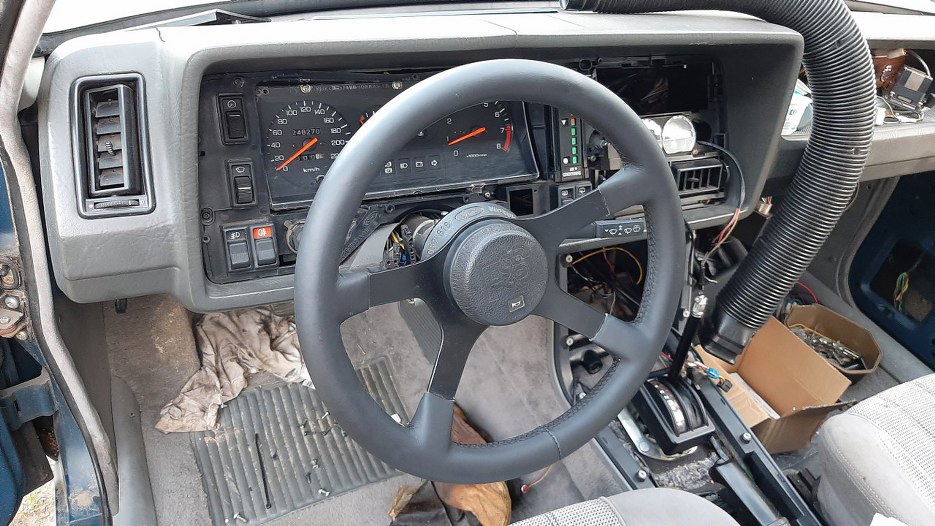 Potem kierownica została obszyta. Tu już zdjęcie zamontowanych nowych zegarów (poznalibyście, że to z Civica?) i kierownicy.