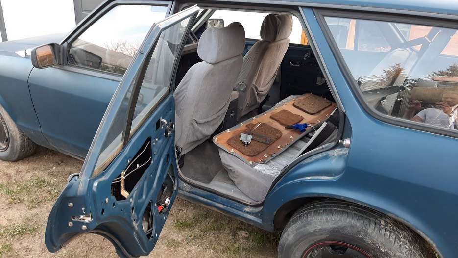 Jak już fotel pasażera przykręciłem, to nagle w bagażniku zrobiło się więcej miejsca i mogłem rozłożyć tylną kanapę. Powoli zaczyna to przypominać samochód...