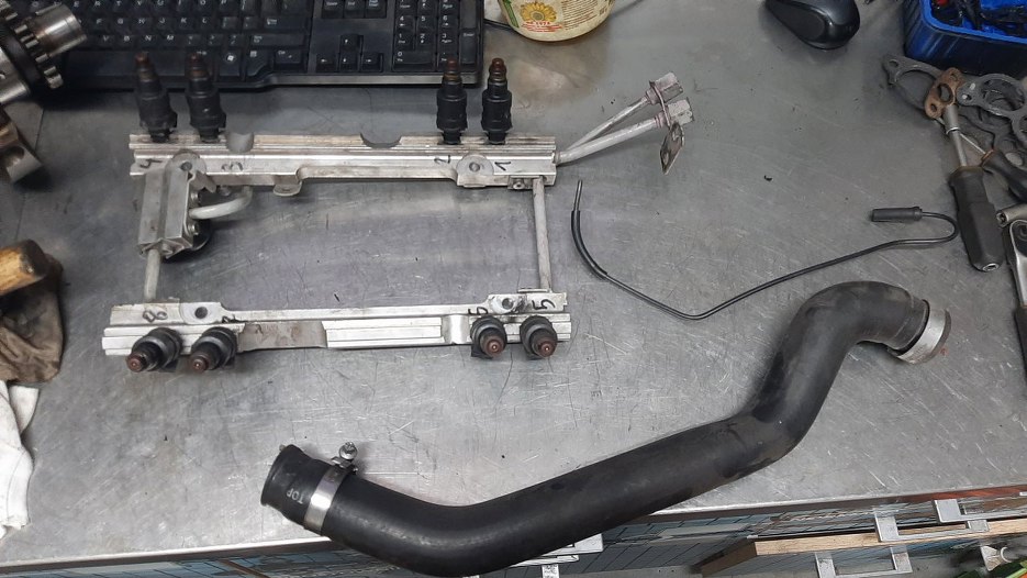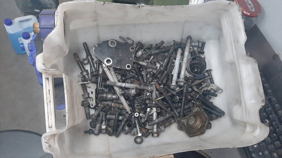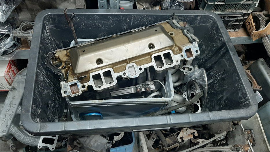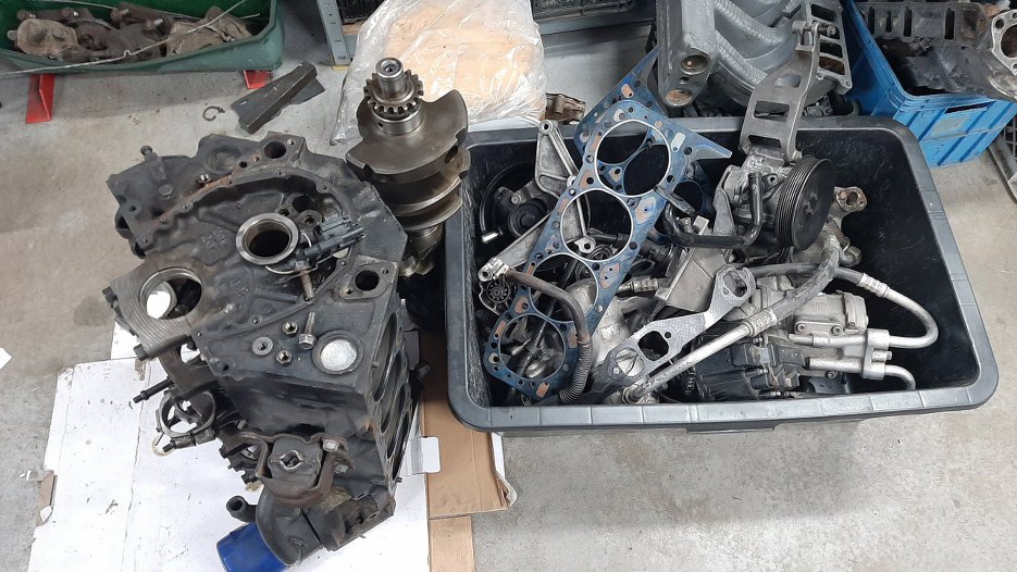 No dobra, ale skoro taki fajny, to co on u mnie w ogóle robi? No właśnie... Właściciel mi go przywiózł w postaci bloku z głowicami, ale z wyjętym wałem korbowym. Żeby nie dźwigać, to od razu zdjęliśmy głowice i w garażu znalazło się takie coś.