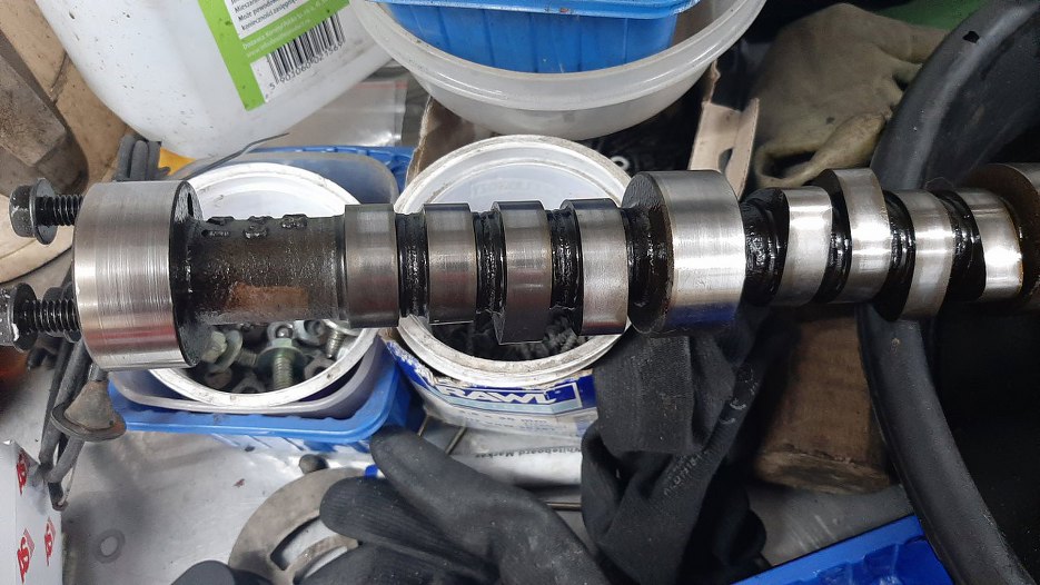 To wiemy już, że wał jest do śmieci, ale po ocenie całej reszty stwierdziłem, że nie ma co robić pełnego remontu. Wałek rozrządu w bardzo dobrym stanie, gładzie cylindrowe praktycznie nie zużyte. Pewnie Corveta była jeżdżona tylko do kościoła.