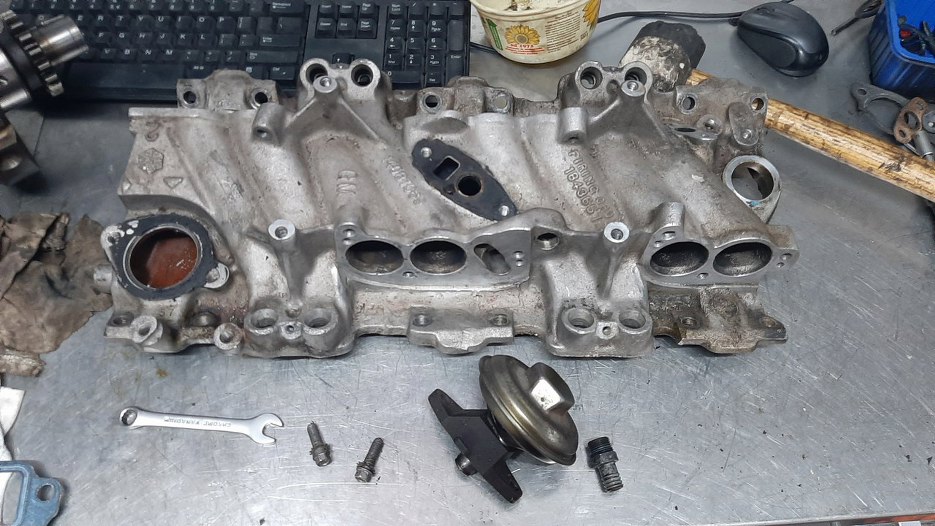 Z wierzchu też wykręciłem ile się dało. Zawór EGR... Oj, nieprzychylnie się na niego spojrzałem. W tych silnikach i tak nic nie daje, a tylko komplikuje konstrukcję.