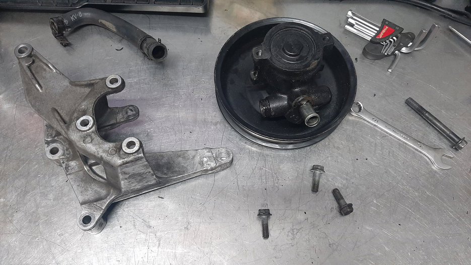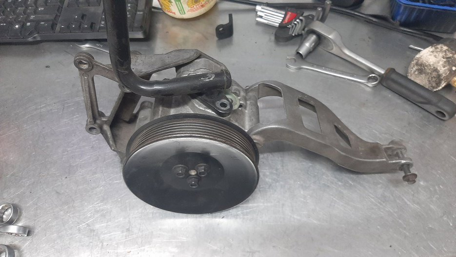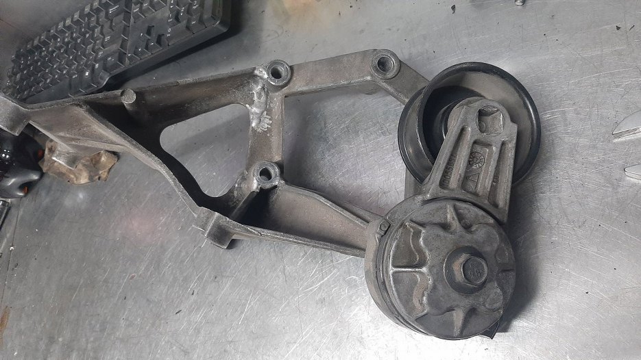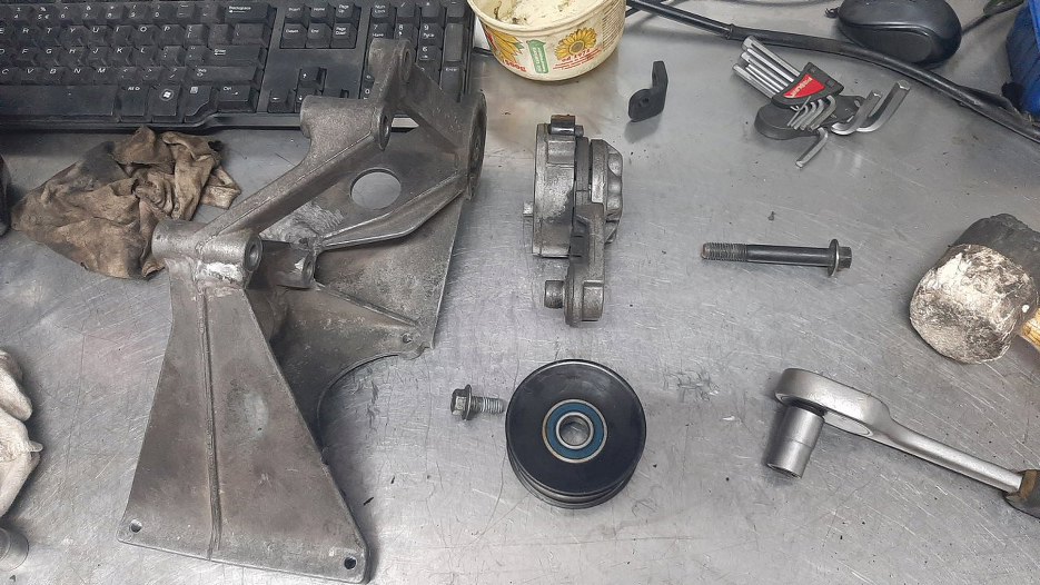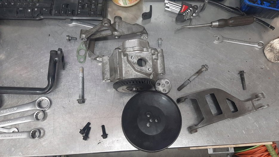 Odkręciłem wspornik do odnowienia. Koła pasowego zdjąć na razie nie dałem rady, później się tym zajmę.