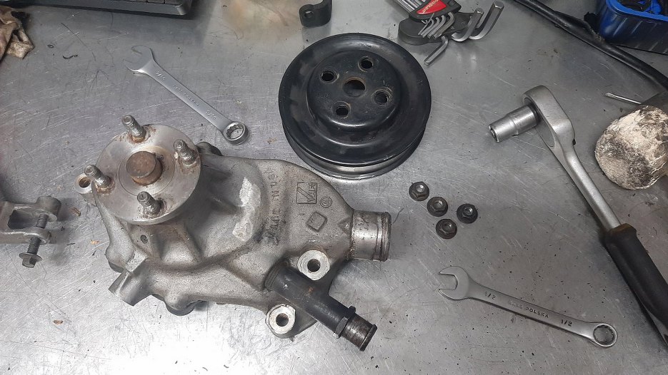 Lecę dalej, po kolei. Pompa wody. też aluminiowa. Bywały żeliwne bardzo często.