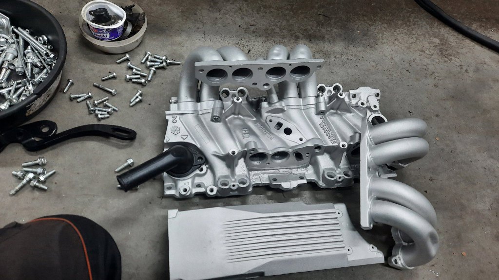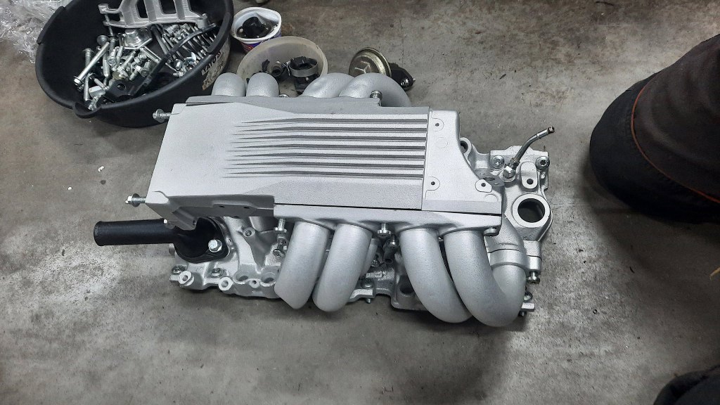Po ich powrocie zacząłem kompletować dolot. Sam silnik to ja w sumie trochę i znam, ale dolot jest od wtrysku, więc pierwszy raz to na oczy widzę. Dlatego miałem trochę wyzwanie w dobraniu pasujących do tego śrubek. Muszą się nie tylko zgadzać ilością i długością, ale łebki też raczej mają mieć takie same, skoro trzymają jedną część. Wbrew pozorom nie jest to prosta sprawa. Coś jak szukanie puzzla do kawałka tła układanki :).
