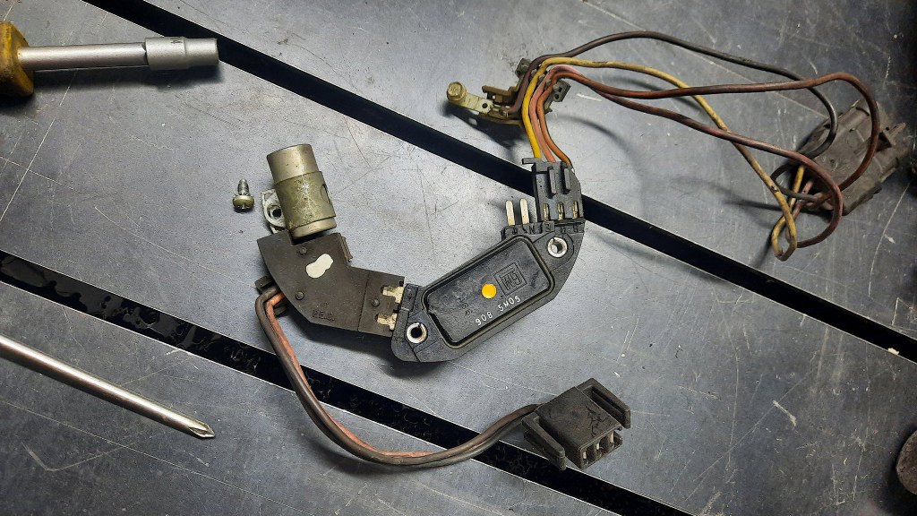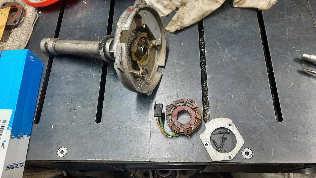 Została jeszcze cewka, z której pobierane są impulsy wyzwalające potem iskrę w cewce. Nie wiem, czy jest to czujnik Halla, czy inna konstrukcja... Na przerywaczach się znam :).