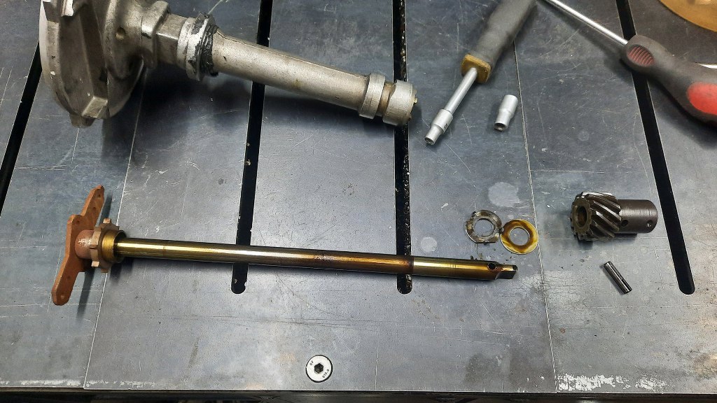 Zdjąłem zębatkę napędzającą i wyjąłem oś aparatu.