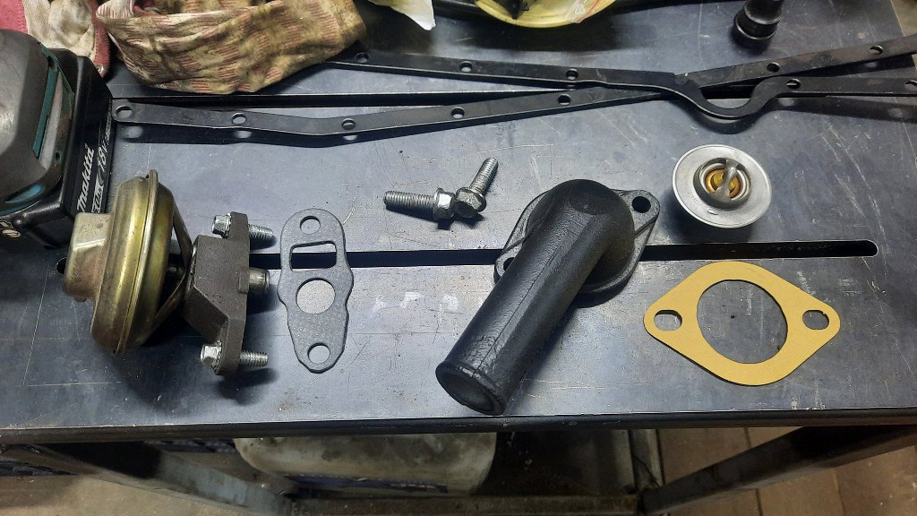 Przymierzyłem je też do kolektora i dobrałem śrubki je mocujące. Widać też, że mam przymierzony i termostat i EGR. Tam też musiałem dobierać śrubki, szukając ich w całej masie innych :).