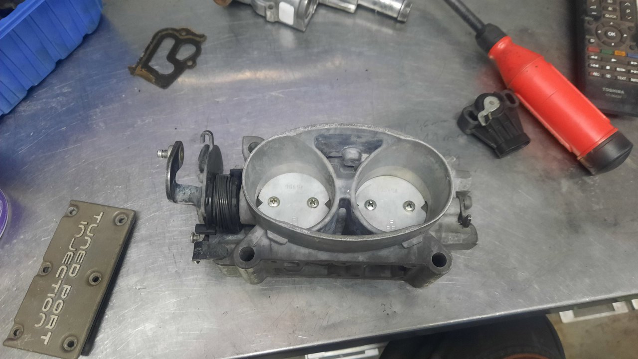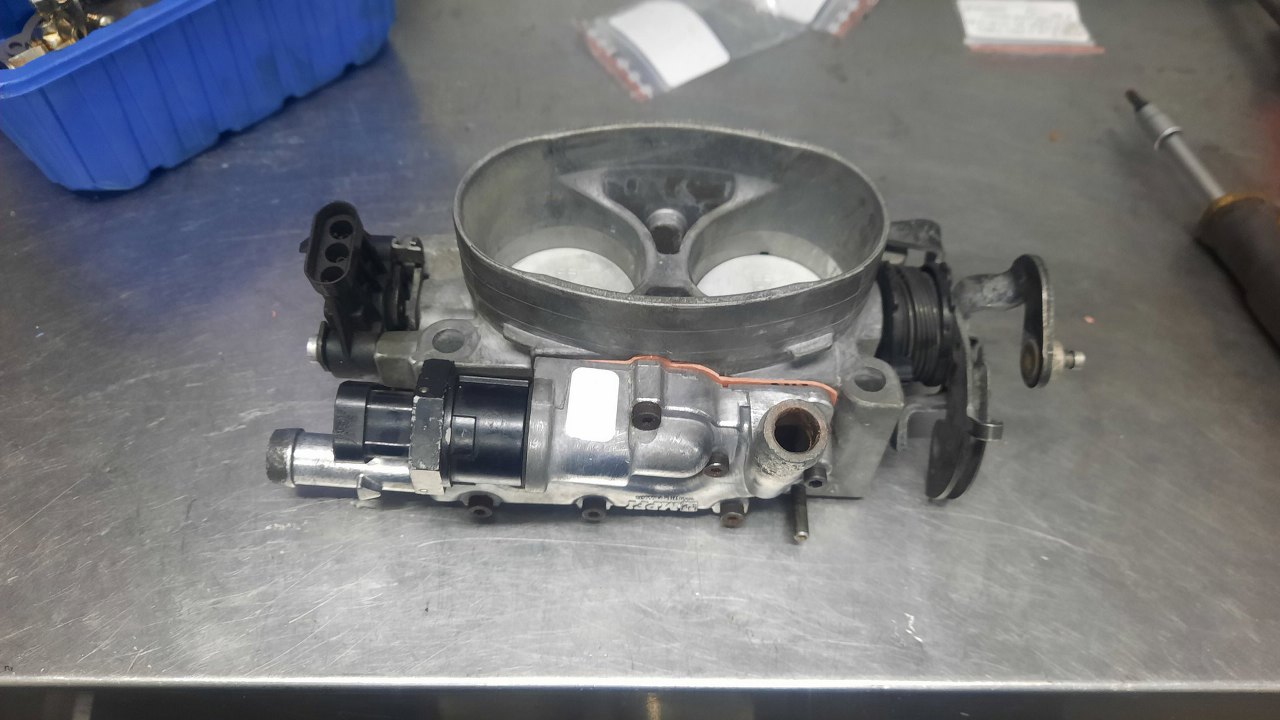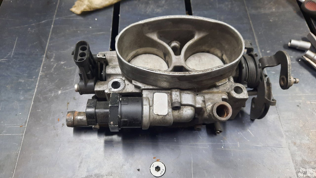 Następną częścią, którą się zająłem była przepustnica. Nie pamiętam, czy akurat na niej była naklejka "Do Not Dismantle", ale zazwyczaj taka naklejka na przepustnicy jest. Ja oczywiście nie wiem, co to znaczy, więc zaraz ją rozkręcę :).