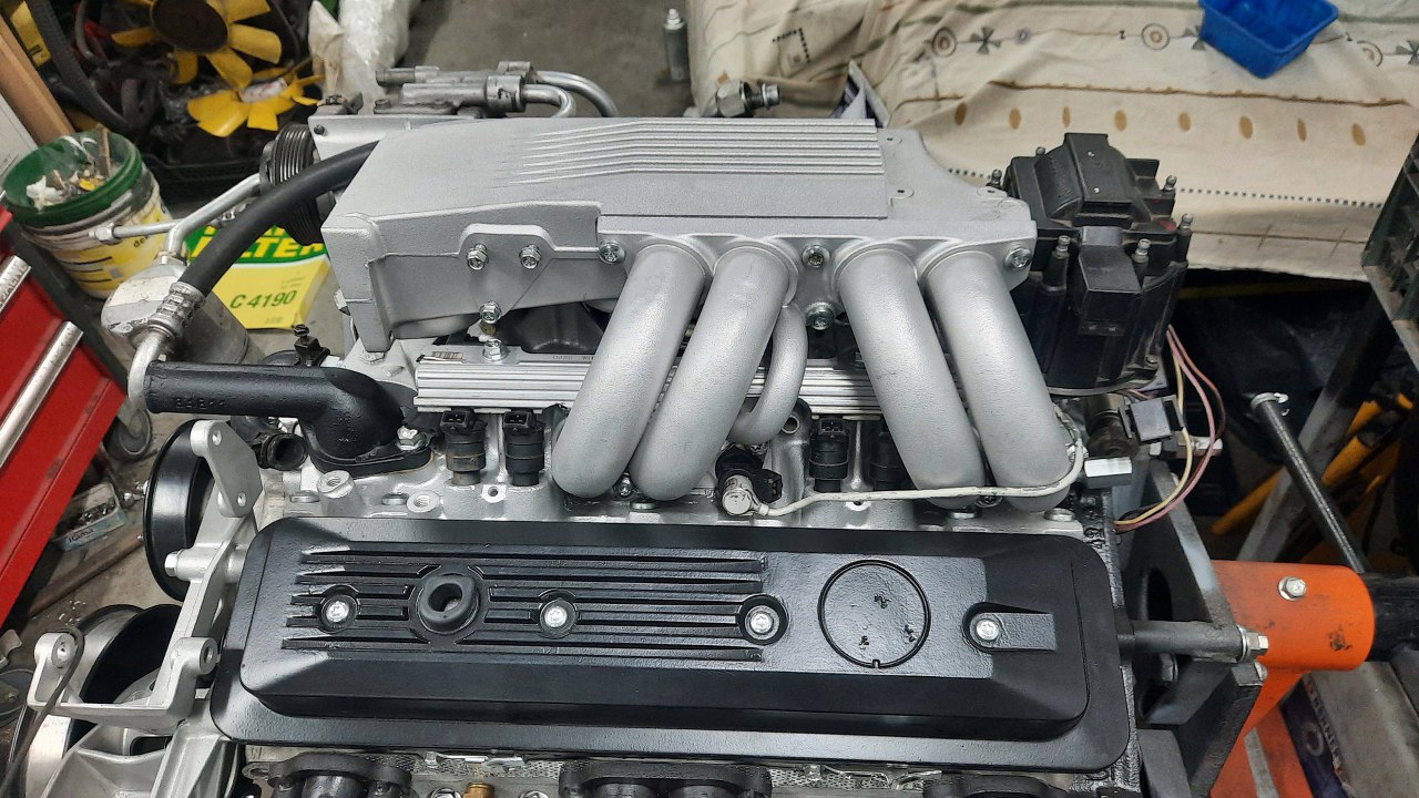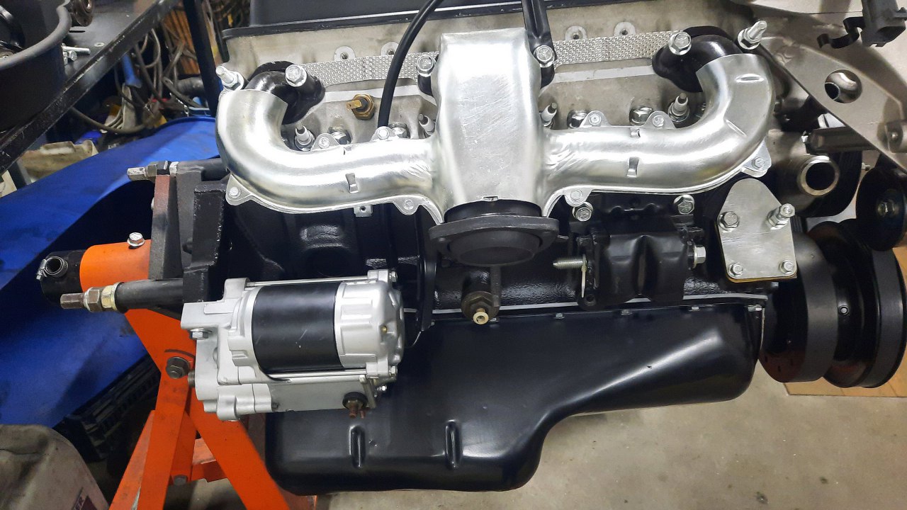 I widok z tyłu. Oprócz górnego wspornika jest jeszcze jeden, ten czarny pręt pomiędzy tyłem rozrusznika a śrubą przy kolektorze wydechowym.