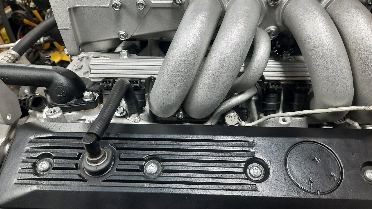 A z przodu jest bardzo zgrabnie poprowadzona aluminiowa rurka do odmy.