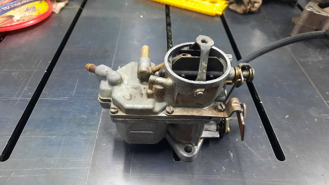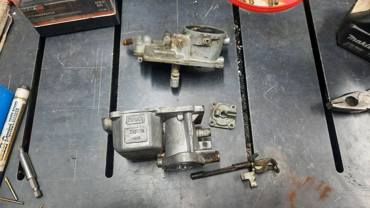 Trafił do mnie taki gaźnik luzem, bez samochodu. FoMoCo 1250, jednogardzielowy. Pochodzi z Saaba 96 z 1974r. Samochód jest teraz w trakcie przeglądu, bo nie bardzo chce jeździć. Telefonicznie ustaliłem, że warto zajrzeć w aparat zapłonowy i gaźnik, ale gaźnik dostałem do zabawy ja. Była jeszcze opcja zakupu nowego gaźnika, ale kosztował dużo, wymagał innego filtra powietrza, no i był nieoryginalny. A akurat ten gaźnik jest bardzo prosty w konstrukcji i uznałem, że dam radę coś z nim zrobić :).