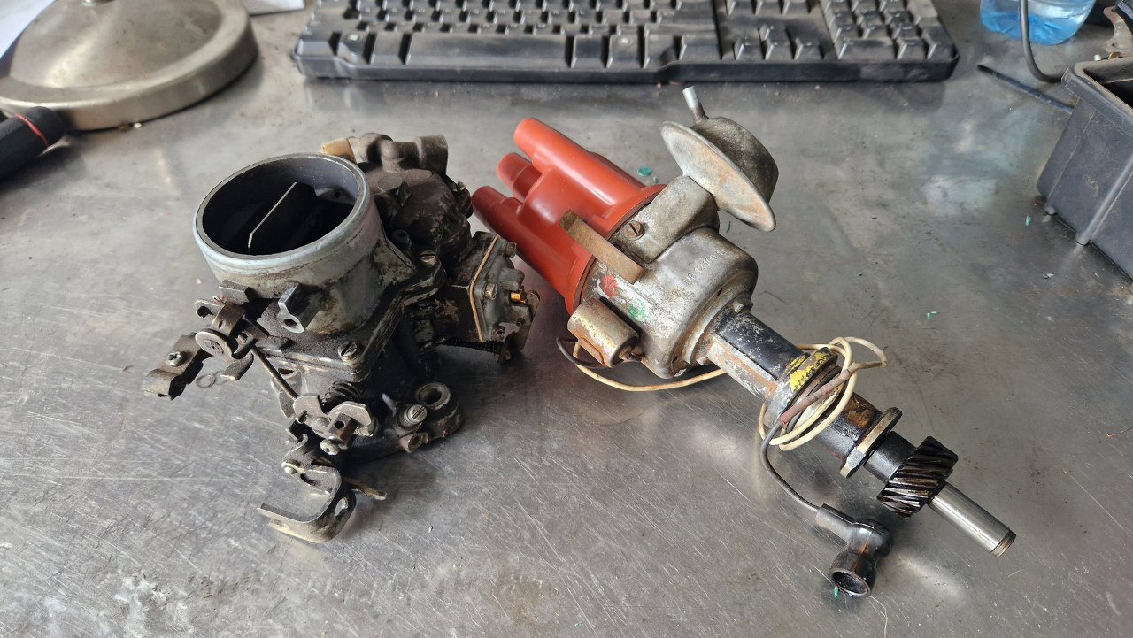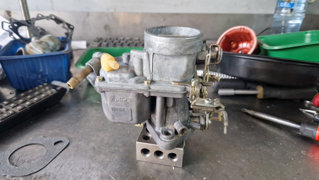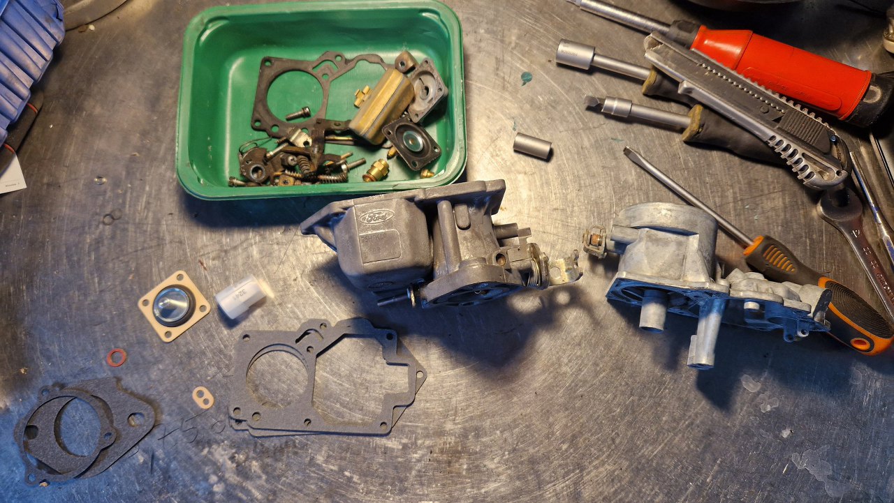 Któregoś dnia (znowu) zadzwonił telefon. Problem z obrotami, zapłonem i w ogóle kulawa praca silnika. Od słowa do słowa się dowiedziałem, że pacjent to Ford Taunus 1.6, z gaźnikiem FoMoCo 1250. Usterka w/g mnie to nie działająca pompka przyśpieszacza (już zgaduję, że znowu ktoś poprzedni zgubił kulkę ze środka gaźnika) i problem z działaniem aparatu zapłonowego. Ponieważ w garażu miejsca nie ma, a samochód i tak dalego i nie dojedzie, dogadaliśmy się, że ogarnę to wysyłkowo. No i części dotarły.