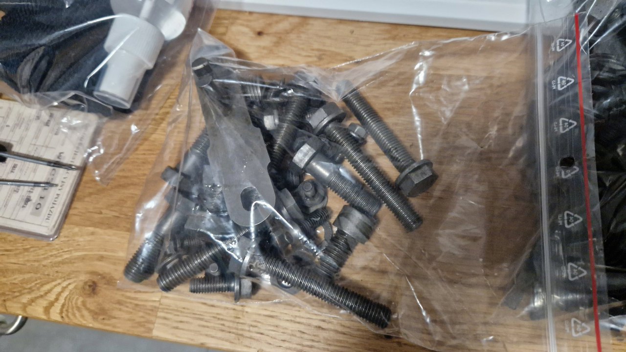 Na pierwszy rzut oka widziałem dwa zniszczone podczas rozkładania łożyska, jeden pierścień sprężysty i nie wiadomo co jeszcze. Okaże się podczas składania. Póki co przygotowałem śrubki do cynkowania i oddałem do galwanizerni.