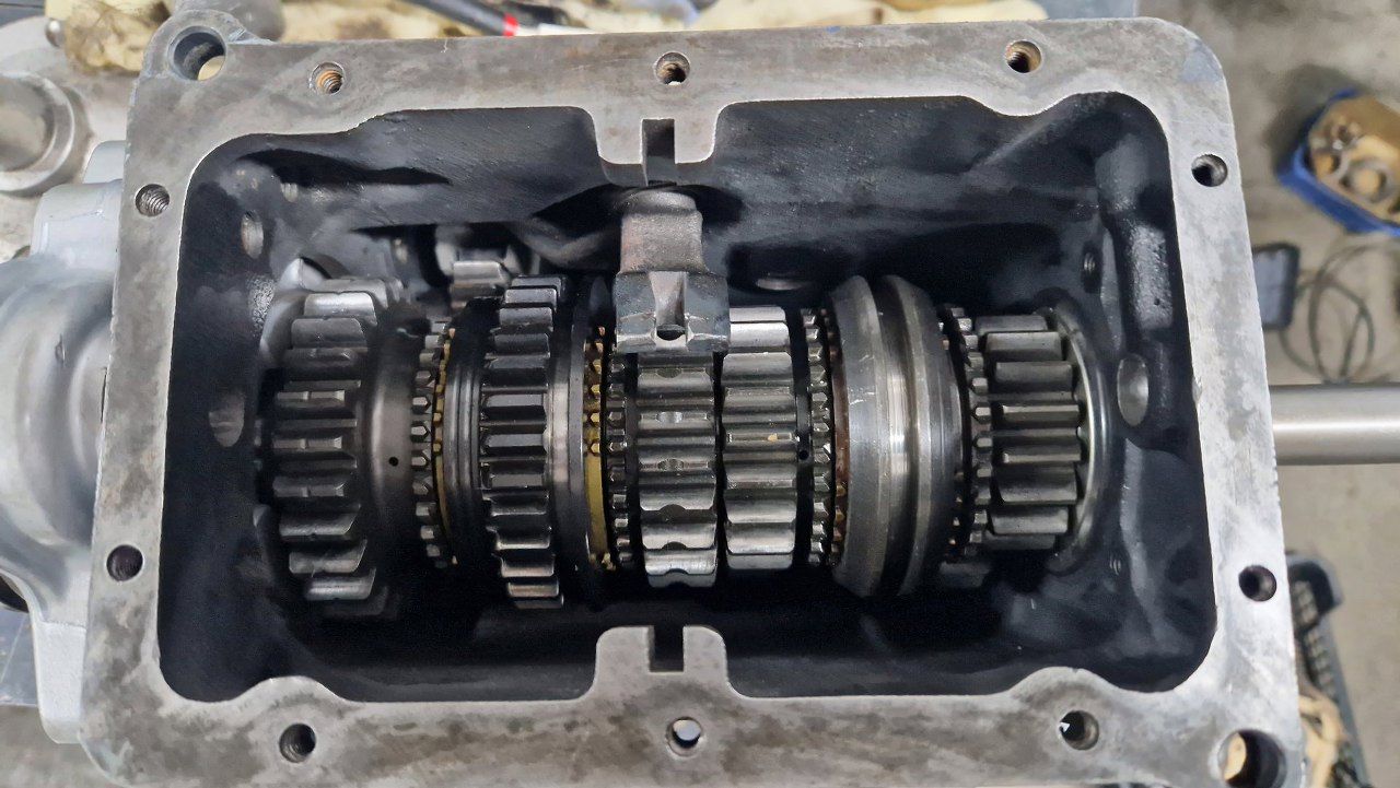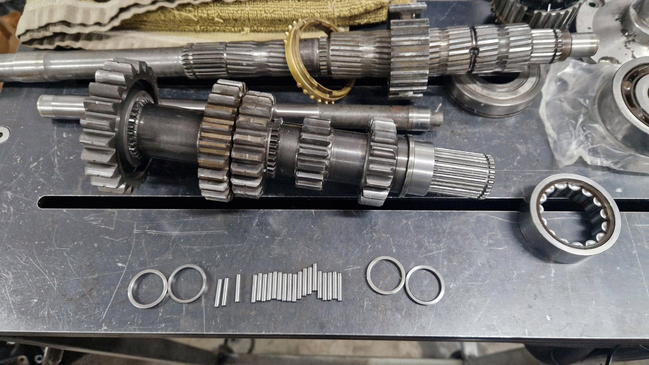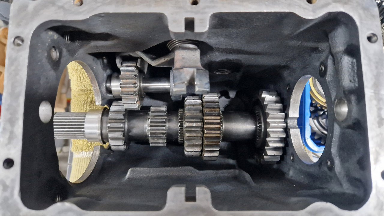 Wałek pośredni w tej skrzyni jest grubszy niż w fordowskim odpowiedniki. Koła są też składane pojedyńczo, więc może i była opcja dobrania sobie przełożeń. Igiełki łożyskujące wałek z przodu są dobre, podobnie łożysko tylne.