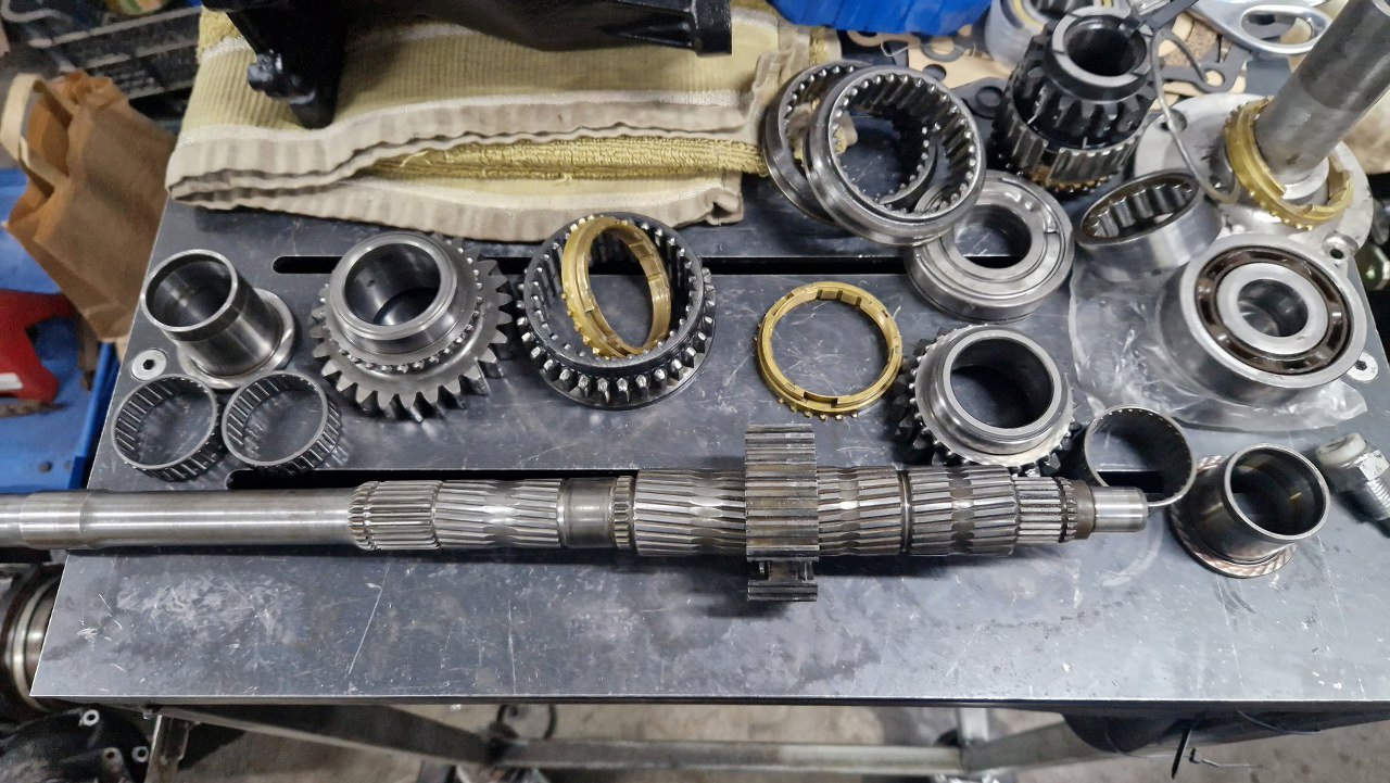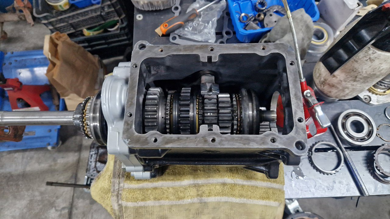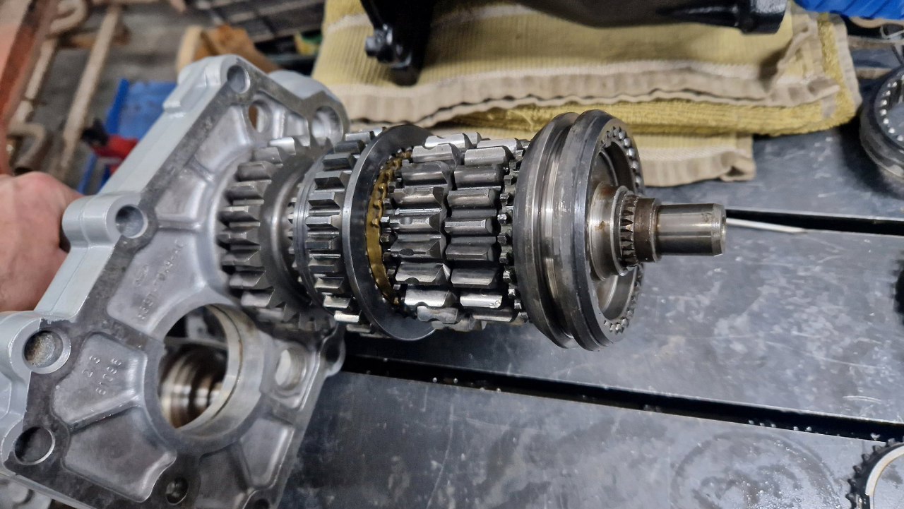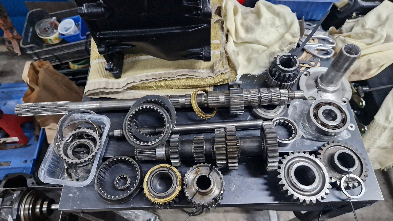 Wałek pośredni w tej skrzyni jest grubszy niż w fordowskim odpowiedniki. Koła są też składane pojedyńczo, więc może i była opcja dobrania sobie przełożeń. Igiełki łożyskujące wałek z przodu są dobre, podobnie łożysko tylne.